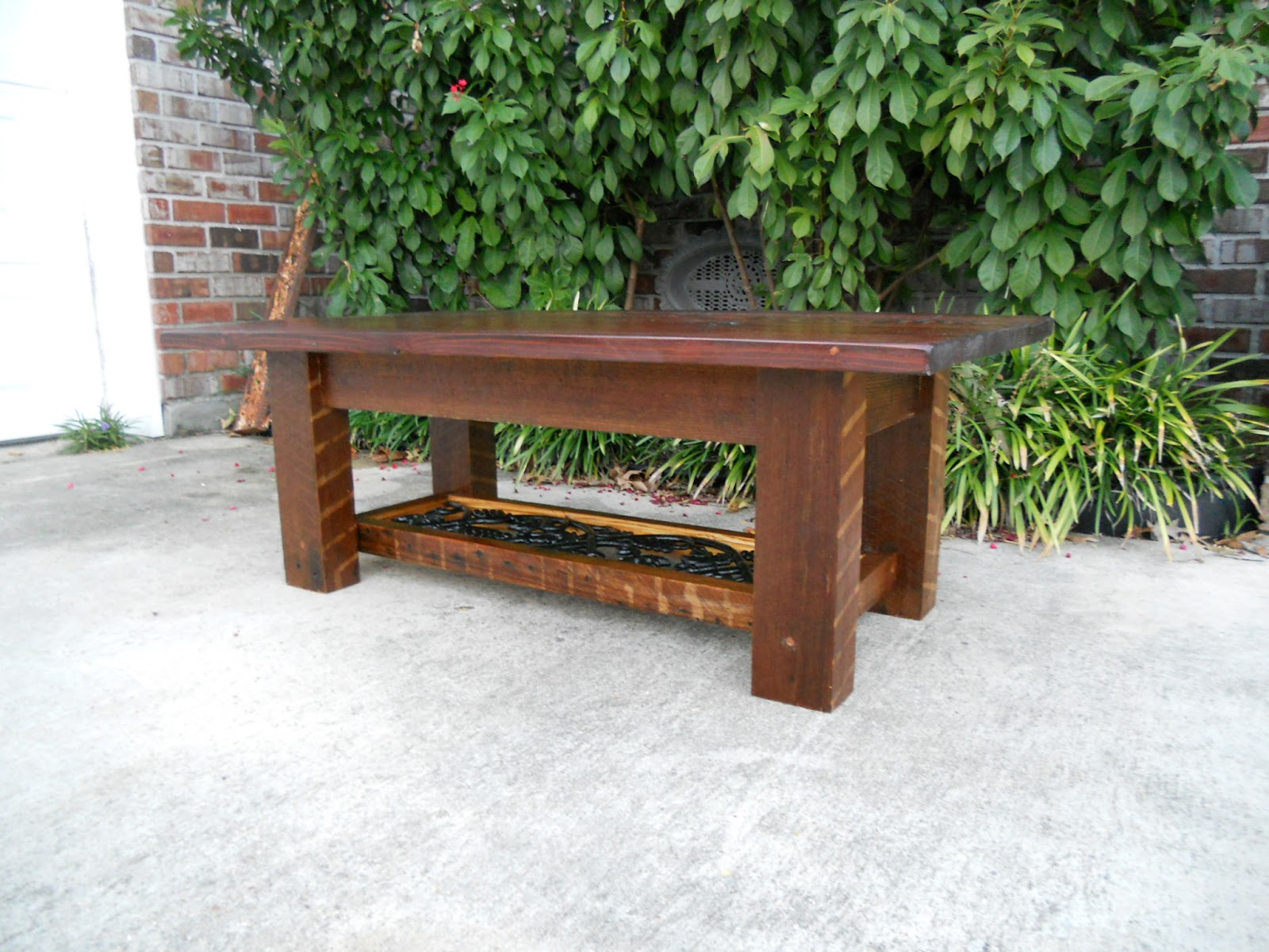 Coffee table made from antique pine and old cypress. It's got a porch wrought iron accent shelf. $525 |